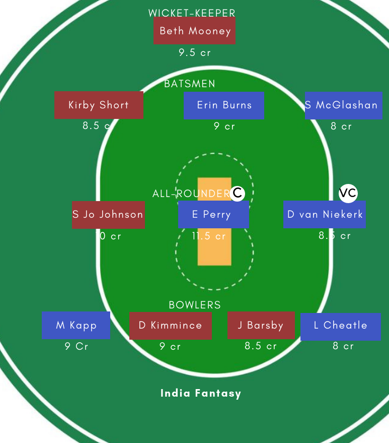 Kirby Short (c), Josie Dooley, Jemma Barsby, Beth Mooney, Haidee Birkett, Grace Harris, Laura Harris, S Jo Johnson, Jess Jonassen, Delissa Kimmince, Sune Luus, Georgia Prestwidge, Laura Wolvaardt