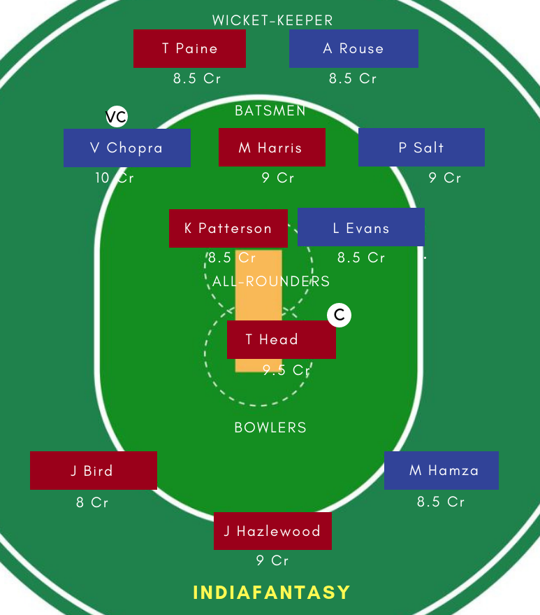 Marcus Harris, James Pattinson, Jackson Bird, Joe Burns, Kurtis Patterson, Travis Head, Will Pucovski, Tim Paine (c, wk), Michael Neser, Josh Hazlewood, Jon Holland