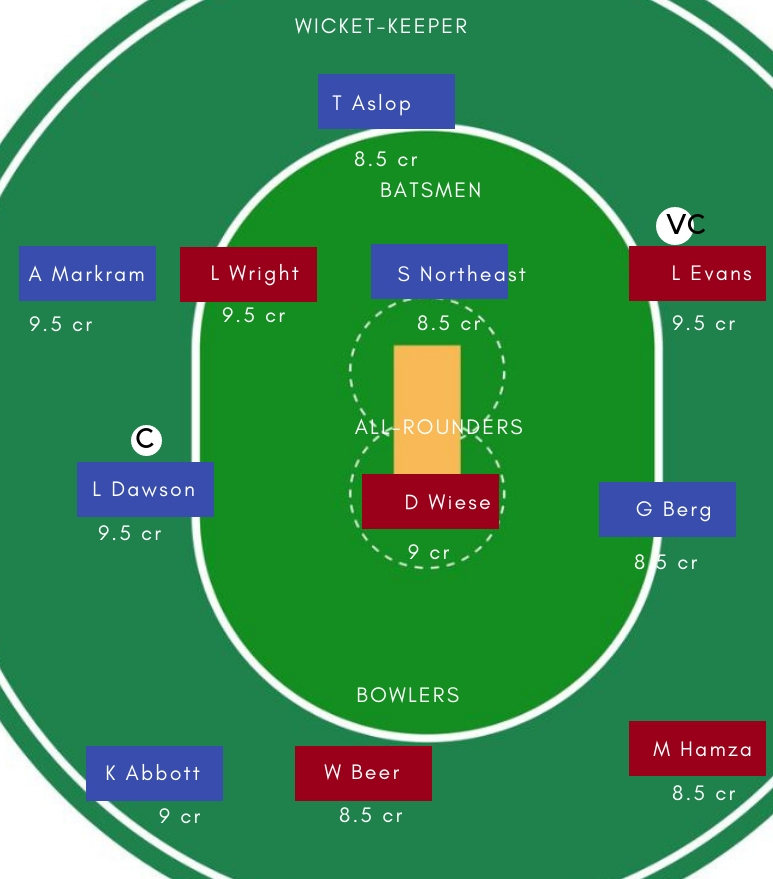 ऑलराउंडर – Liam Dawson, G Berg, J Fuller