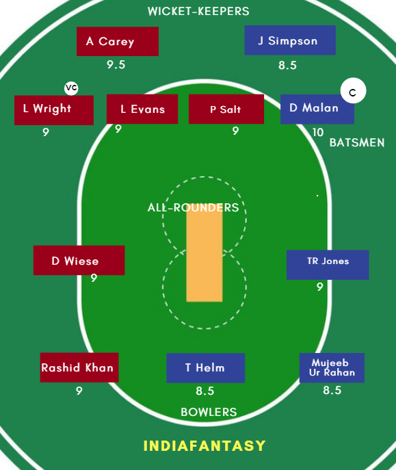 Luke Wright (c), Laurie Evans, Danny Briggs, Tymal Mills, Reece Topley, David Wiese, Alex Carey (wk), Ollie Robinson, Philip Salt, Rashid Khan, Delray Rawlins