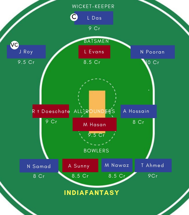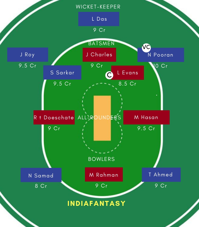 Batsmen- Sabbir Rahman, Alok Kapali (c), Jason Roy, Nicholas Pooran