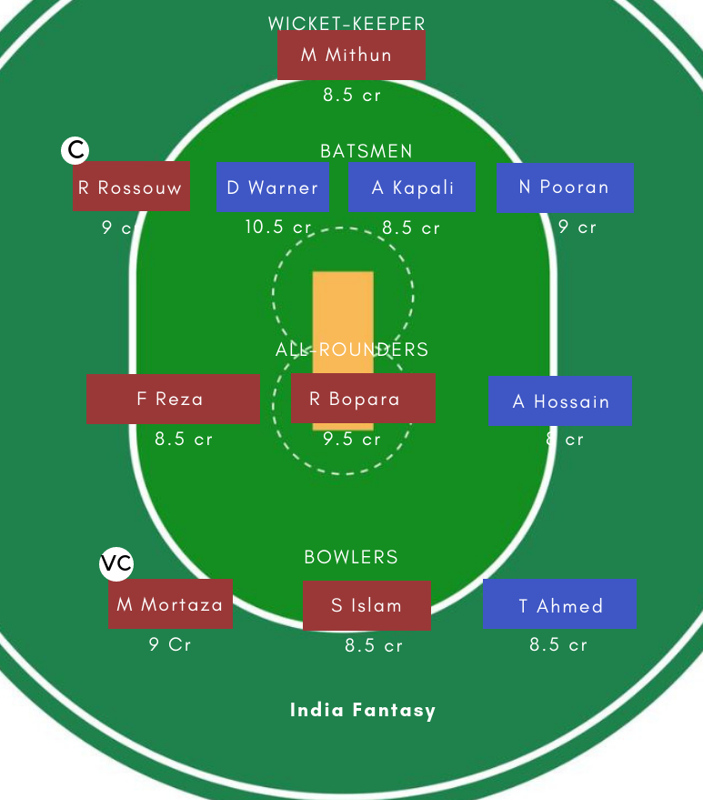 Batsmen- David Warner (c), Sabbir Rahman, Alok Kapali, Nicholas Pooran
