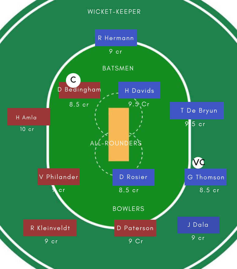 ऑलराउंडर : V Philander, D Rosier और G Thomson हरफनमौला खिलाड़ी का तौर पर बेस्ट हैं. तीन ऑलराउंडर के साथ आप खेल सकते हैं.