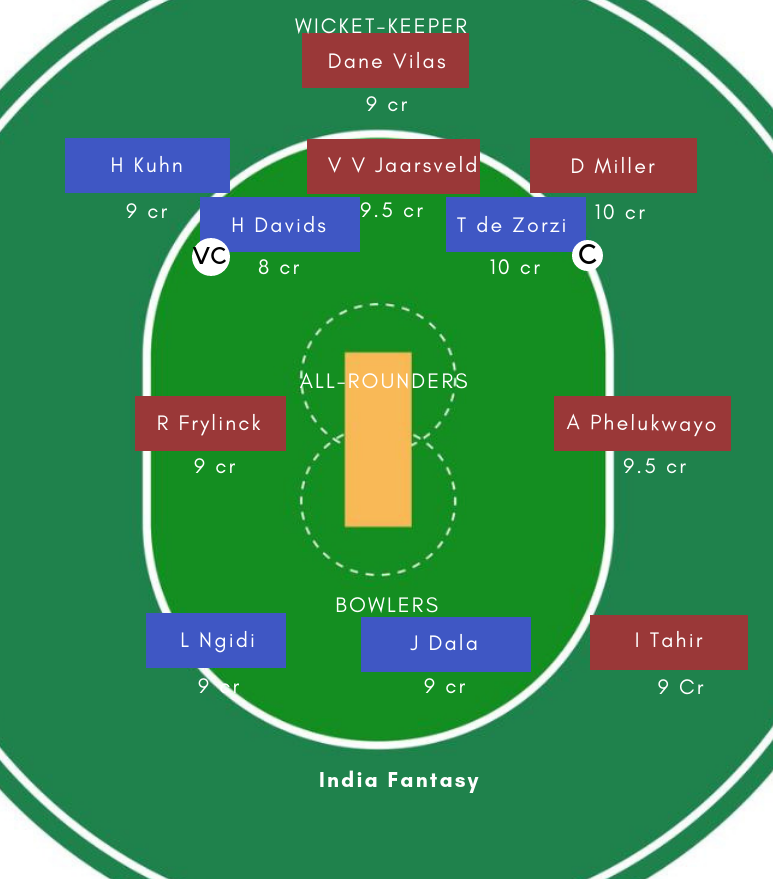 Batsmen: Farhaan Behardien, Heino Kuhn, Tony de Zorzi, Henry Davids