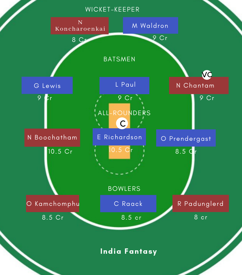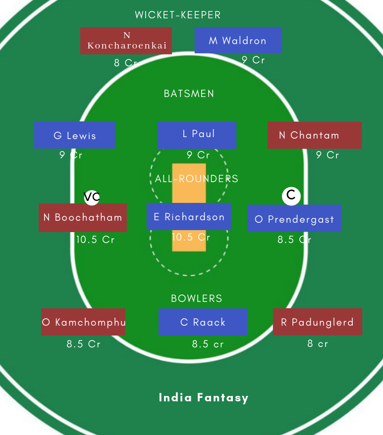 N Boochatham and O Kamchompu are the key bowlers for Thailand with 8 and 6 scalps respectively