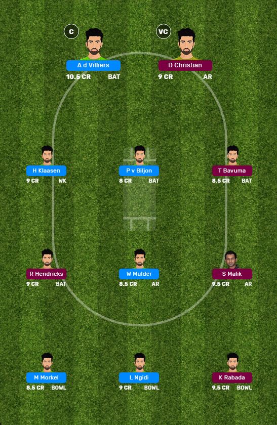 Captain choice: We are backing Ab de Villiers to come good in this game. he has scored 247 runs so far in the competition from 7 innings at a staggering strike-rate of 153.41. Temba Bavuma and Reeza Hendricks are other options to rely upon here.