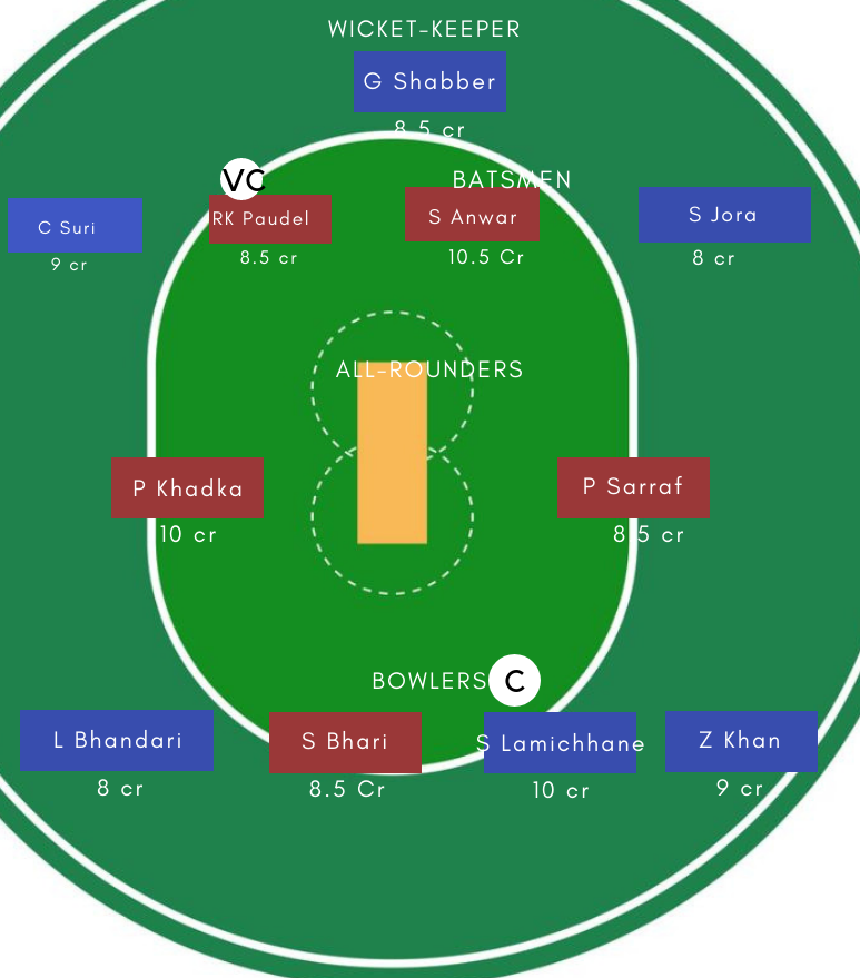 बल्लेबाज : Chirag Suri और S Anwar पर यूएई की बल्लेबाजी निर्भर रहती है. यही चीज, नेपाल के बल्लेबाज G Malla पर लागू होती है. A Ahmed और RK Paudel में से किसी एक को चुन सकते हैं.