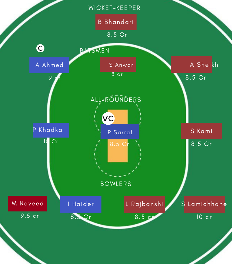 ऑलराउंडर : P Sarraf और S Kami को टीम में लें. P Khadka नेपाल के कप्तान हैं. और उनसे अच्छे प्रदर्शन की उम्मीद कर सकते हैं.