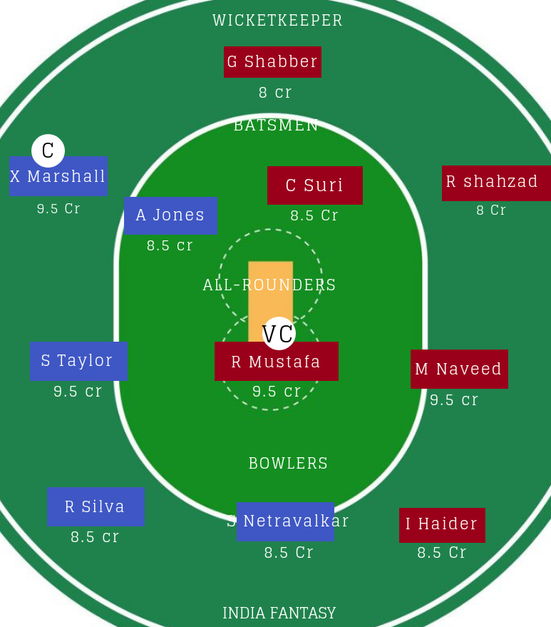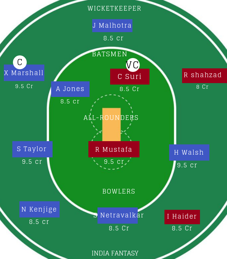 बल्लेबाज : M Patel, X Marshall, A Jones, SR Taylor