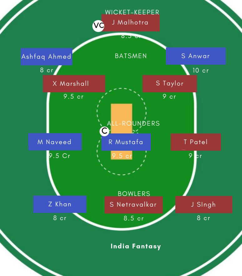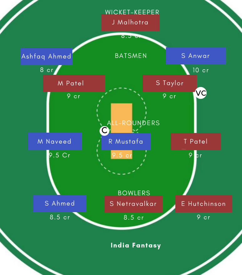 Bowlers- E Hutchinson, Jasdeep Singh, S Netravalkar (Doubt: Ali Khan)
