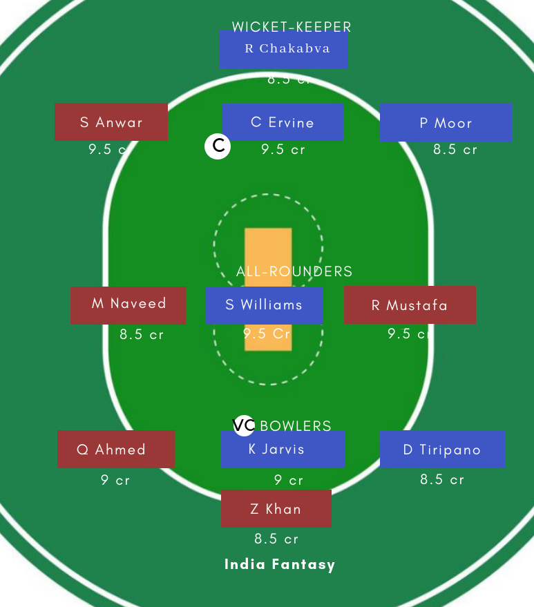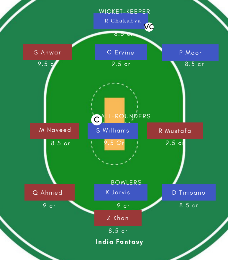 Batsmen: Craig Ervine, Solomon Mire, Peter Moor (c), Ryan Burl, Timycen Maruma