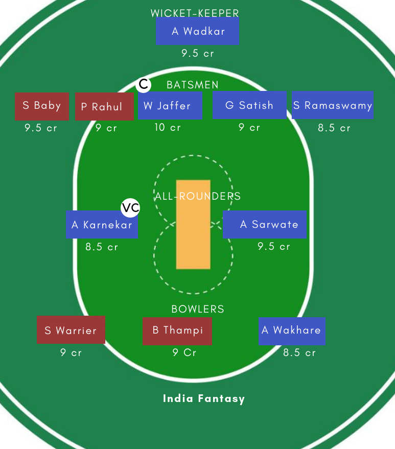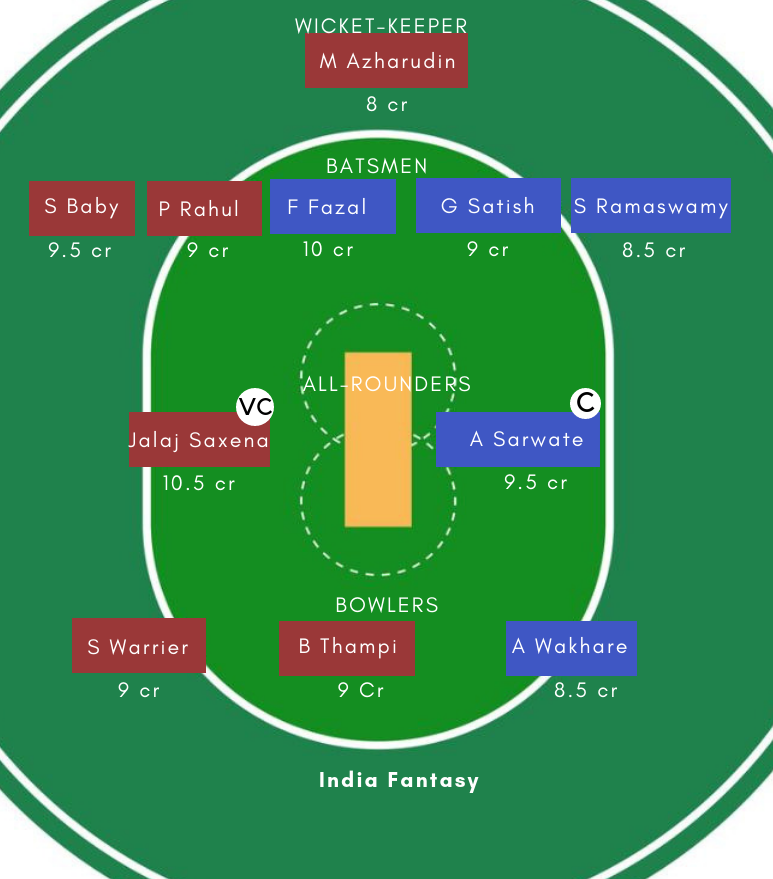 Batsmen – Sachin Baby (c), Sanju Samson, Ponnam Rahul, Vishnu Vinod