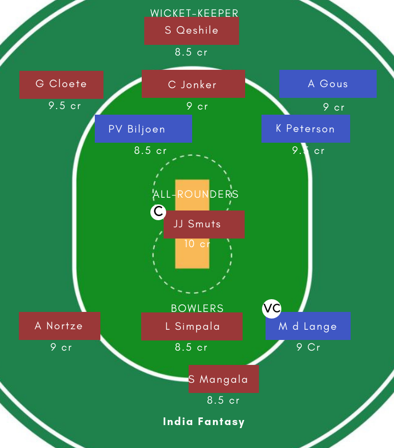VKB Knights started their campaign against Titans and faced 9 wickets defeat in the opening fixture. Their second encounter with Lions got abandoned without a ball being bowled due to rain playing the spoilsport. In the third fixture, Knights locked horns with Cape Cobras and faced another 3 wickets defeat while defending 282 runs on the board. Placed at the bottom of the ladders, Knights would be desperate to open their account with a win.