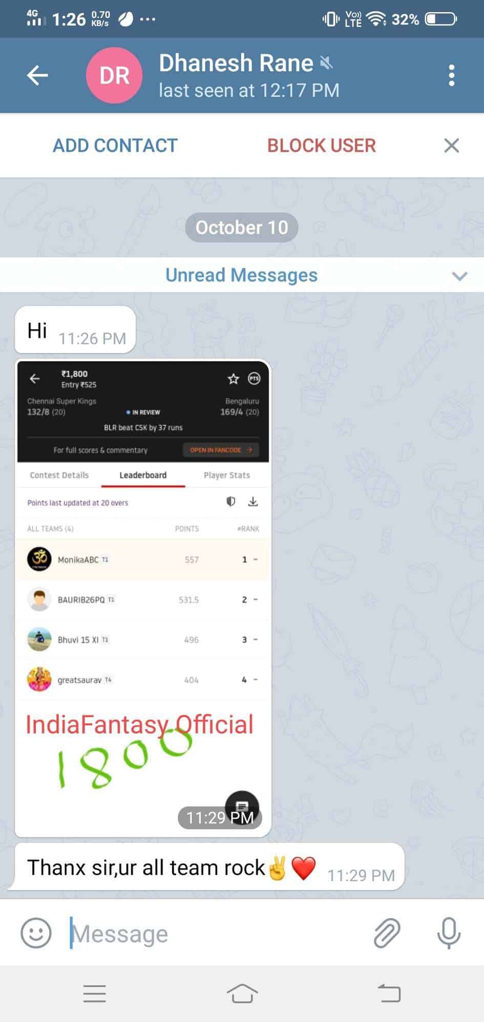 Doubleheaders in IPL are a chance to double your winnings or profit. But only if you have subscribed to IndiaFantasy Official Telegram Channel. Like the previous doubleheader, this one too was a mega one in terms of winnings and profits. All our teams performed exceptionally well in all four matches over the weekend and here’s the proof of it.