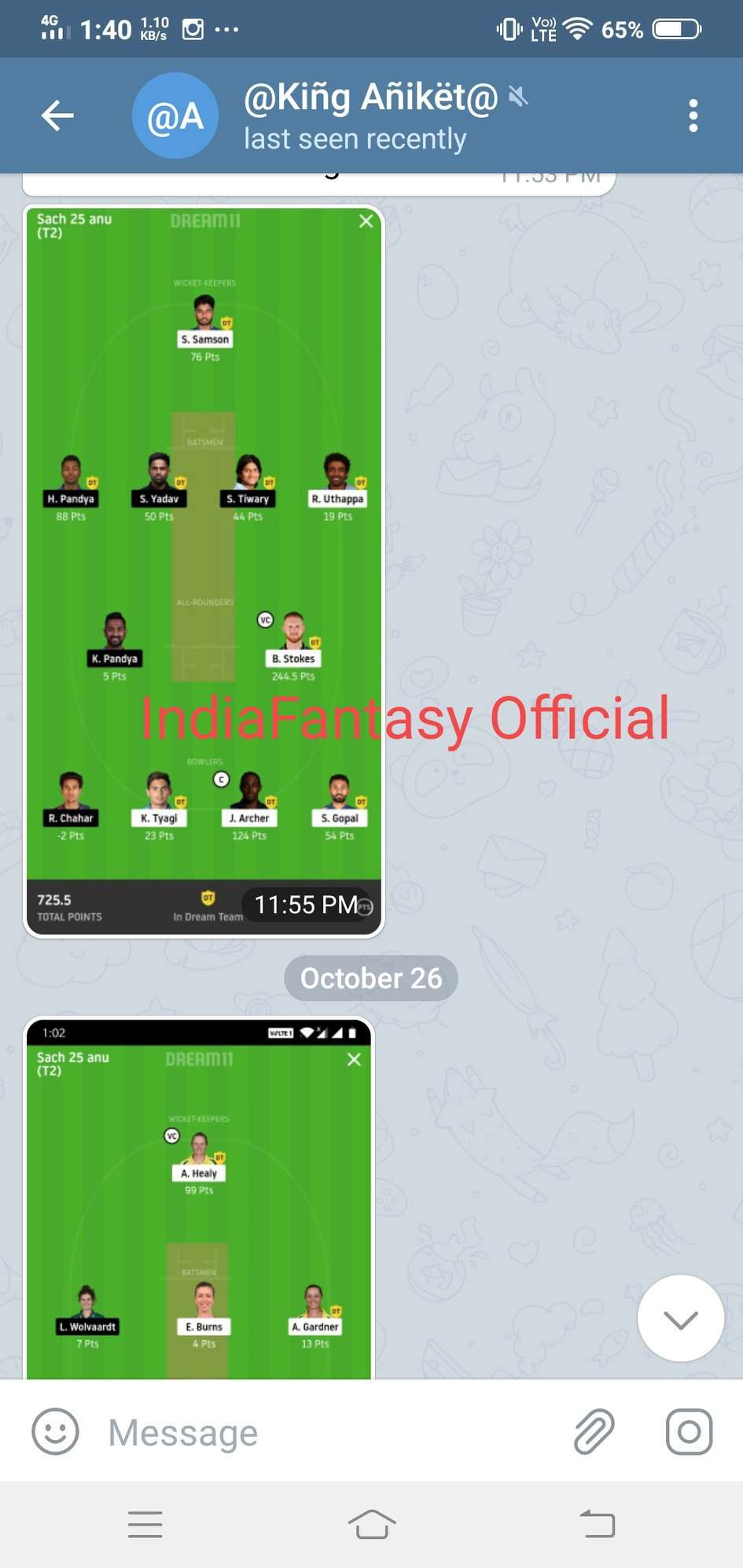 IndiaFantasy Official is one of the fastest-growing telegram channels for Dream11 prediction. We pride ourselves as the best Telegram channel for FREE Dream11 fantasy teams.