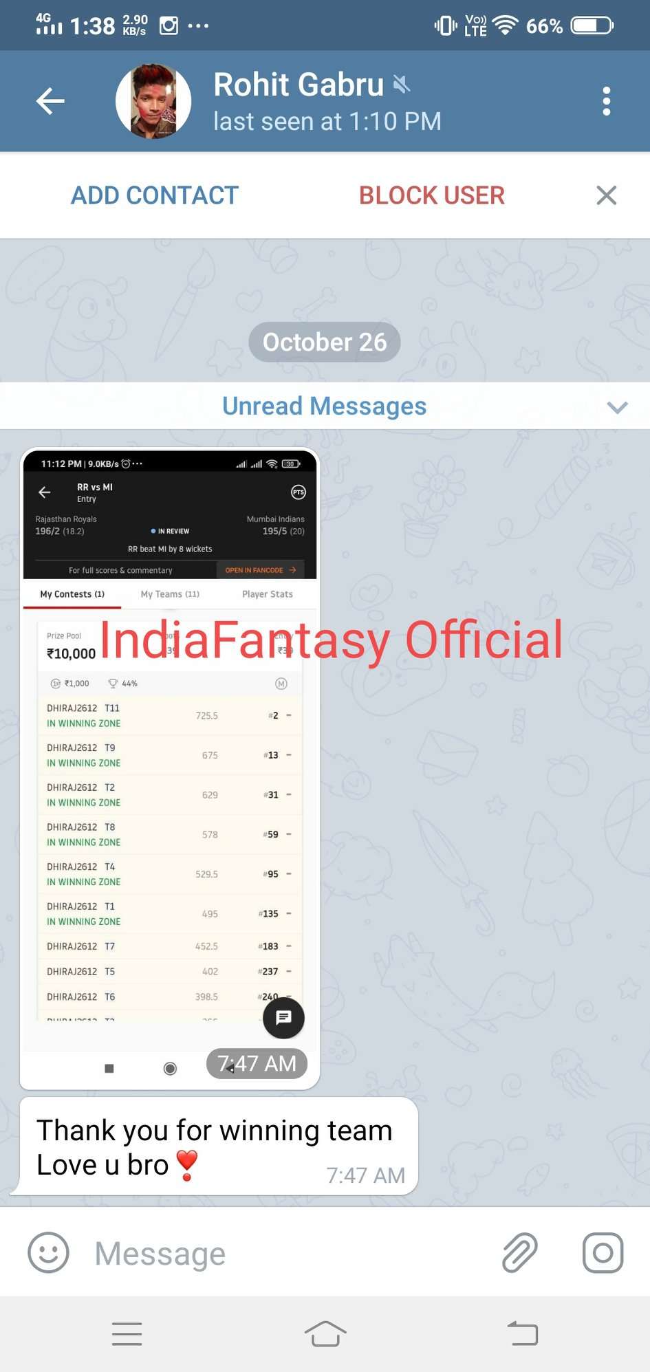 Here are some of the winnings shared by our telegram subscribers for weekend IPL matches –