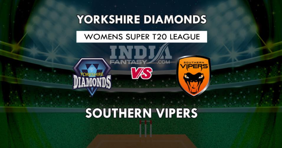 वूमेन सुपर T20 लीग के 13वें मैच में Yorkshire Diamonds की टीम गुरुवार को Southern Vipers के खिलाफ मुकाबले के लिए उतरेगी। इस मुकाबले में Yorkshire Diamonds अपनी पहली जीत दर्ज कर पॉइंट टेबल में अपना खाता खोलना चाहेगी।