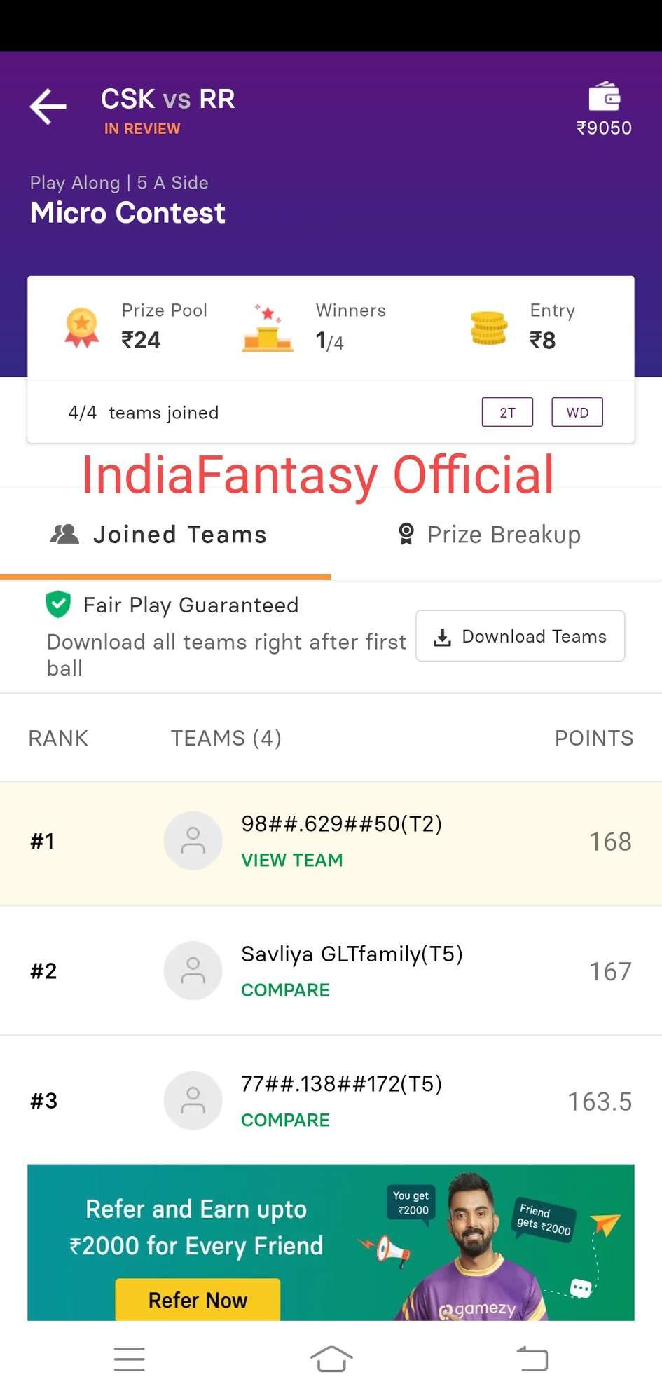 Code : IPL38INDFANTASY | First 200 Users. Once per user.