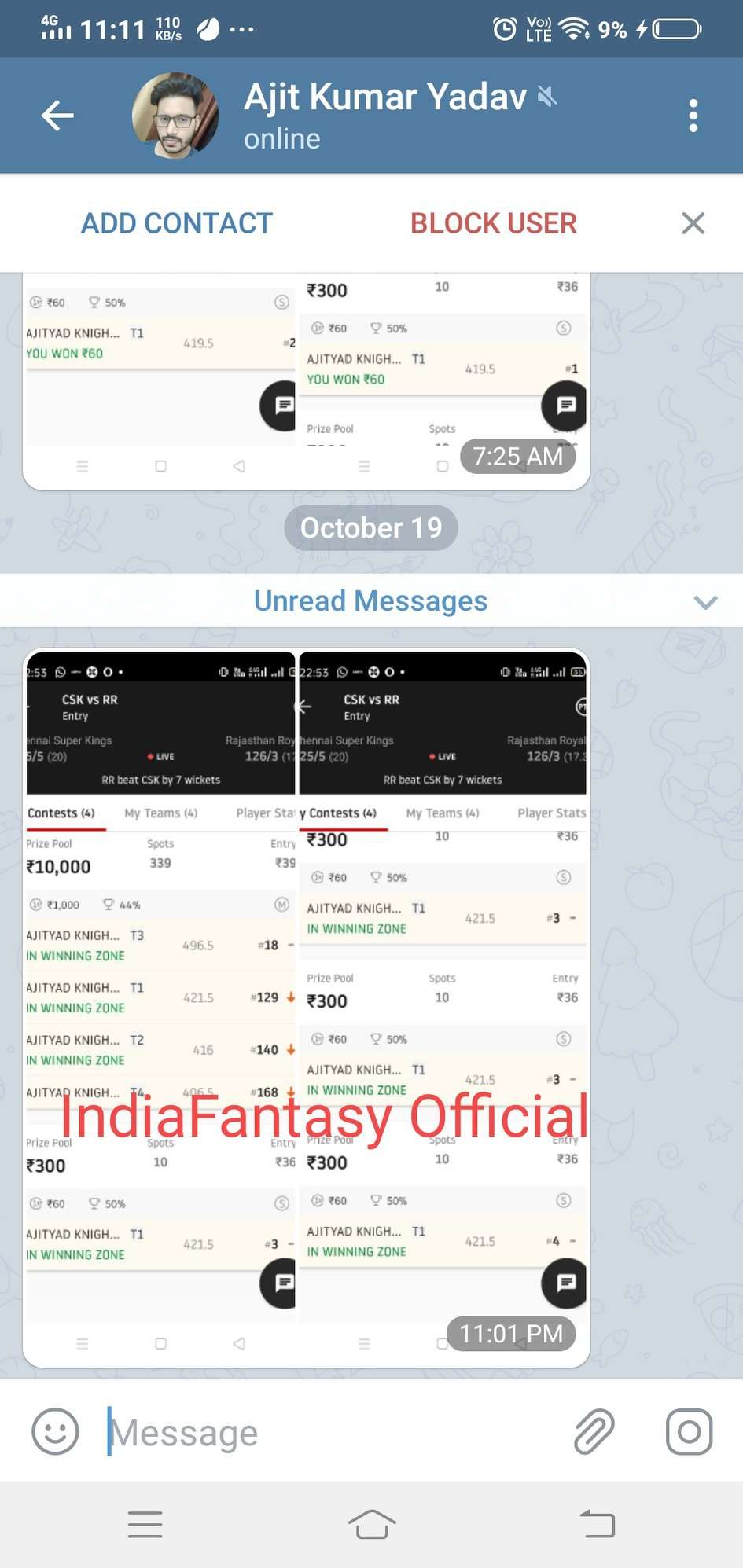Here are some of the winnings shared by our telegram subscribers for weekend IPL matches –