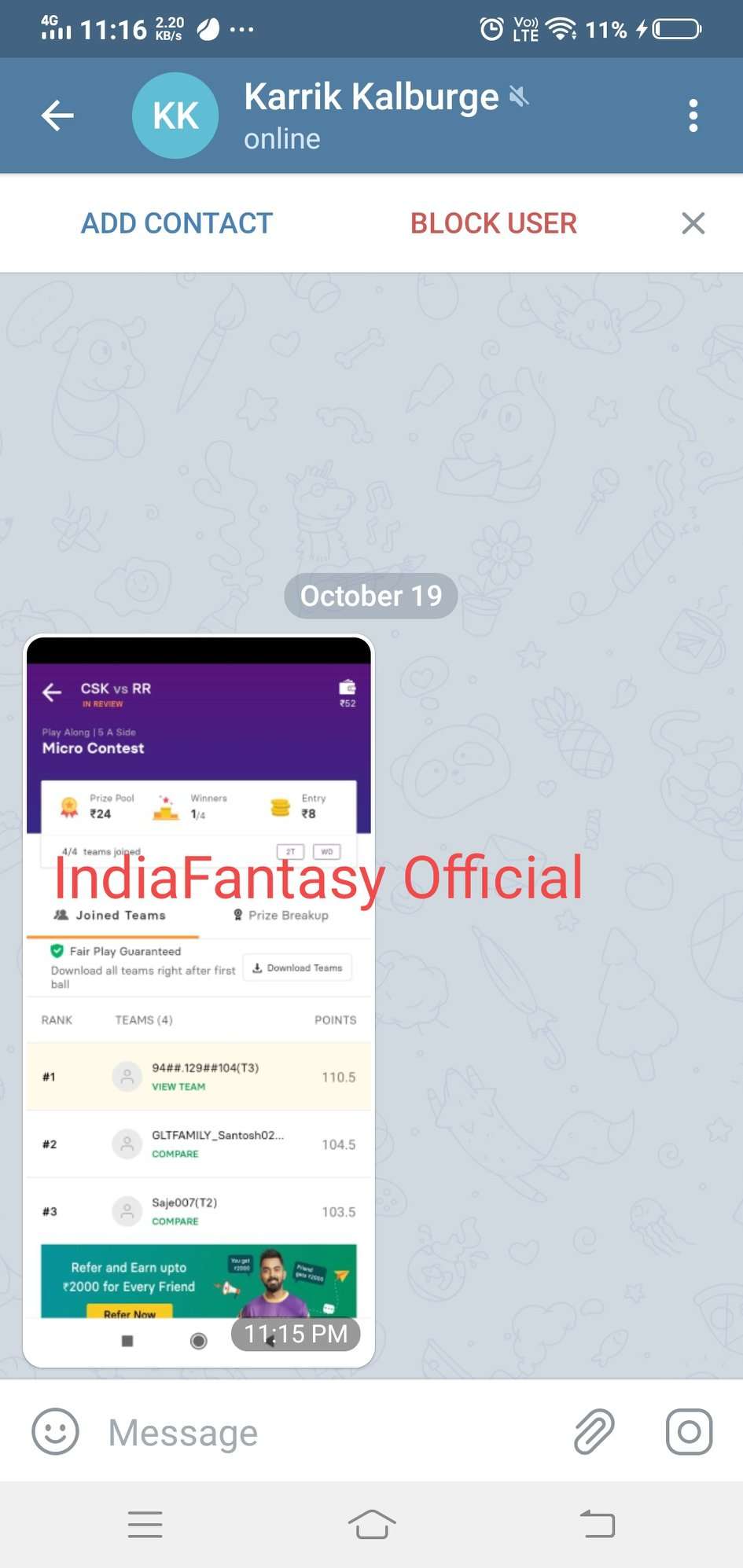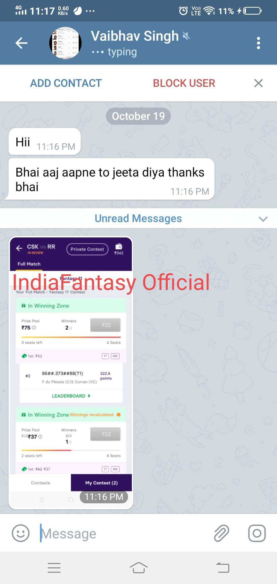 IndiaFantasy Official is one of the fastest-growing telegram channels for Dream11 prediction. We pride ourselves as the best Telegram channel for FREE Dream11 fantasy teams.