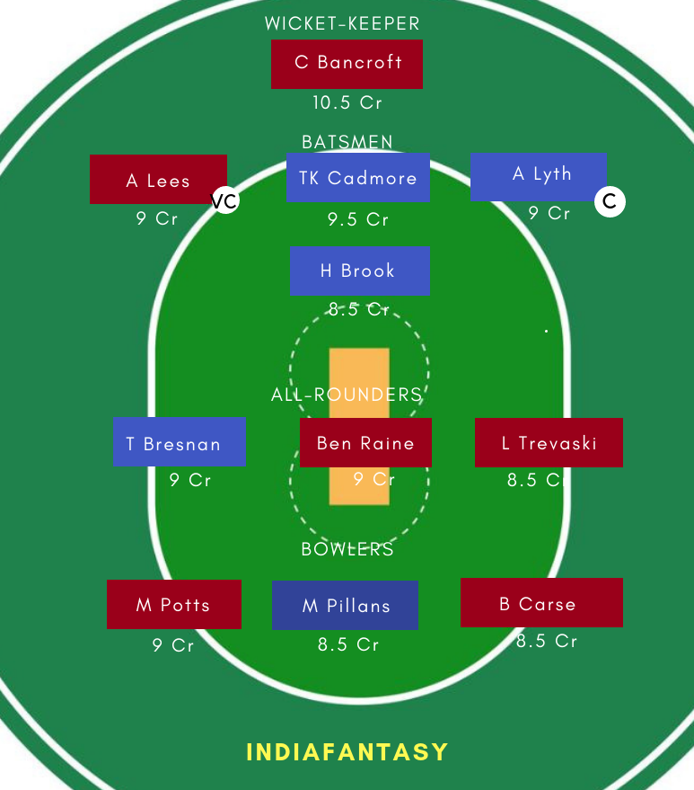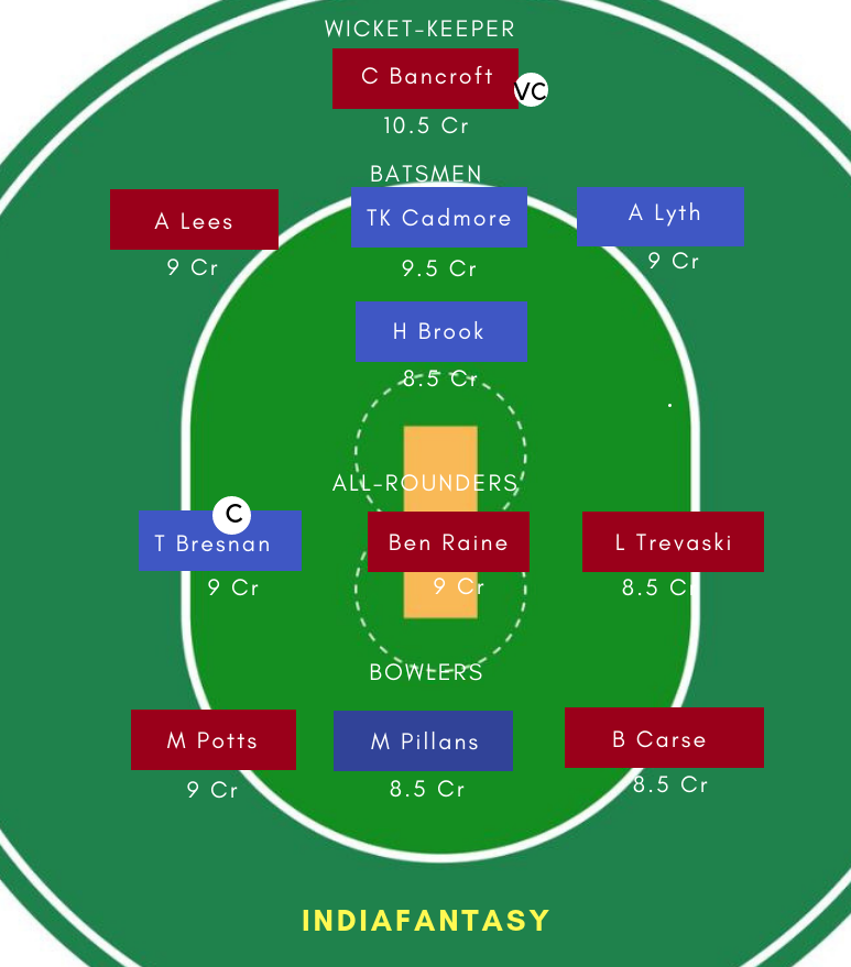 Jack Burnham, Ned Eckersley, Cameron Bancroft (c, wk), Ryan Pringle, Matt Salisbury, Scott Steel, Alex Lees, Michael Richardson, Gareth Harte, Liam Trevaskis, Brydon Carse, Matthew Potts, Ben Raine, Mark Wood