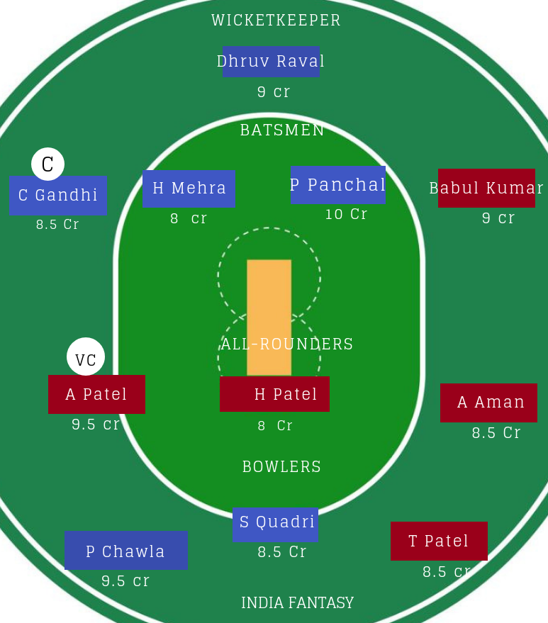 विकेटकीपर : बिना कोई शक के Dhruv raval को टीम में शामिल करें. चार पारियों में ये बल्लेबाज 118 रन ठोक चुका है.