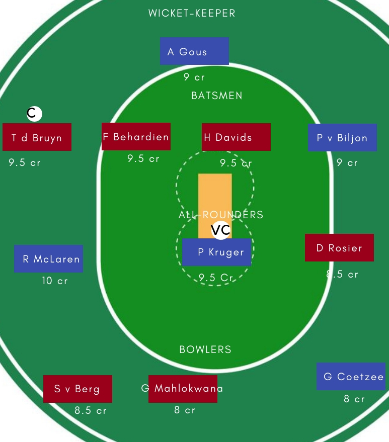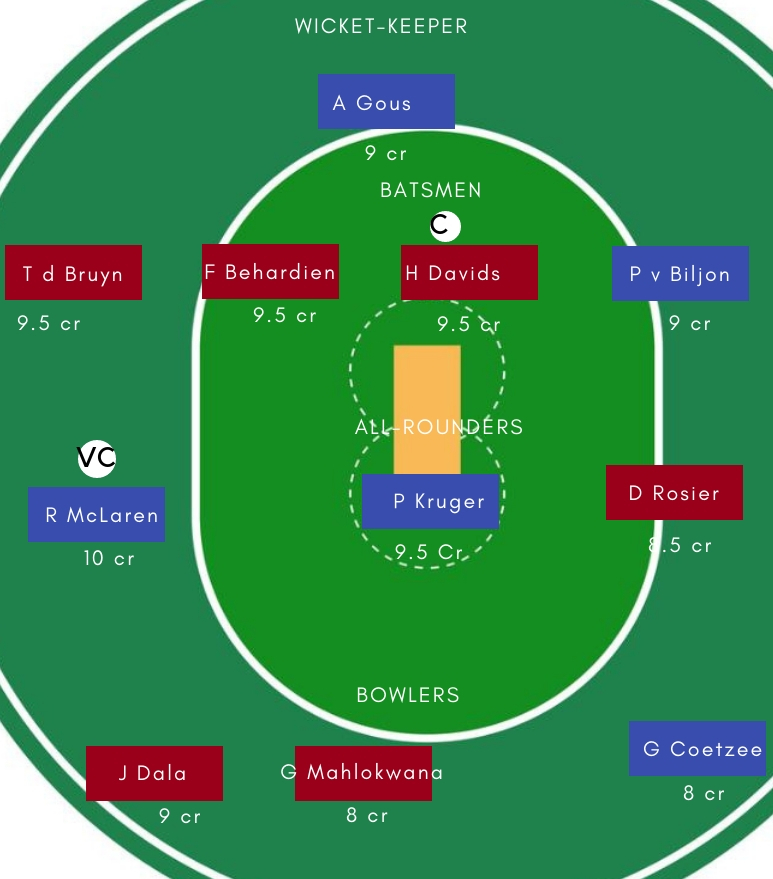 Farhaan Behardien (c), Matthew Arnold, Junior Dala, Theunis de Bruyn, Tony de Zorzi, Henry Davids, Donovan Ferreira, Eldred Hawken, Rubin Hermann, Gregory Mahlokwana, Tshepo Moreki, Diego Rosier, Grant Thomson, Shaun von Berg