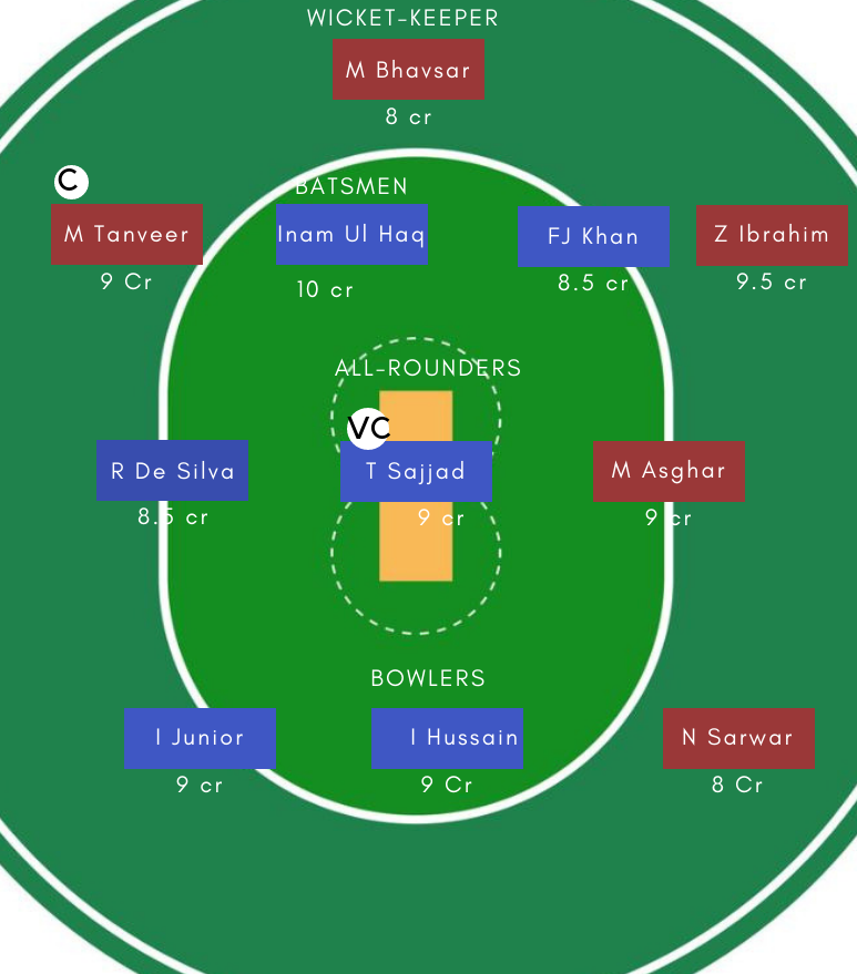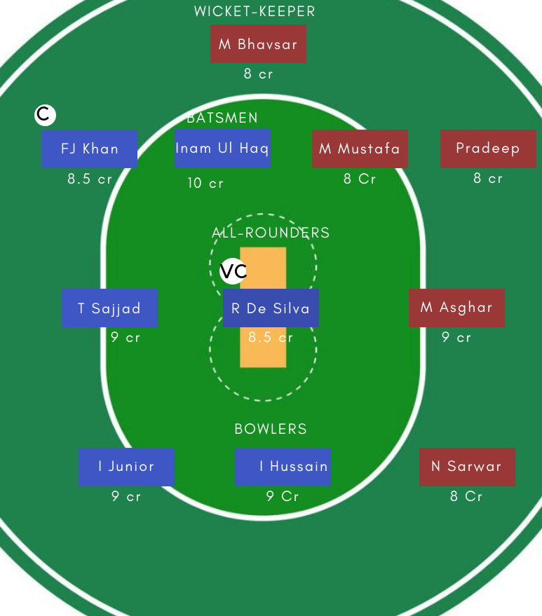 Pradip और Mustafa को दो-दो विकेट मिले थे. वहीं, I Junior ने सबसे ज्यादा तीन विकेट हासिल किये थे. बल्लेबाजी में आप Mohammed Asghar और Raushen de Silva को ले सकते हैं.
