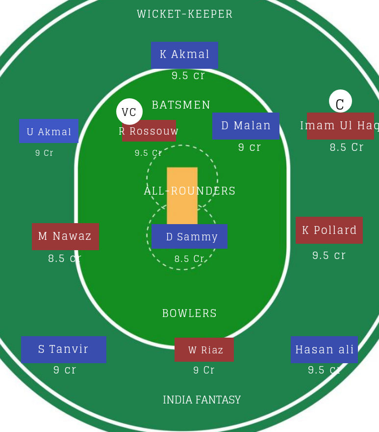 ऑलराउंडर : K Pollard, D Sammy के अलावा M Nawaz को आप तीसरे ऑलराउंडर के तौर पर खिला सकते हैं. तीनों ही प्लेयर टी20 क्रिकेट महारथी हैं.