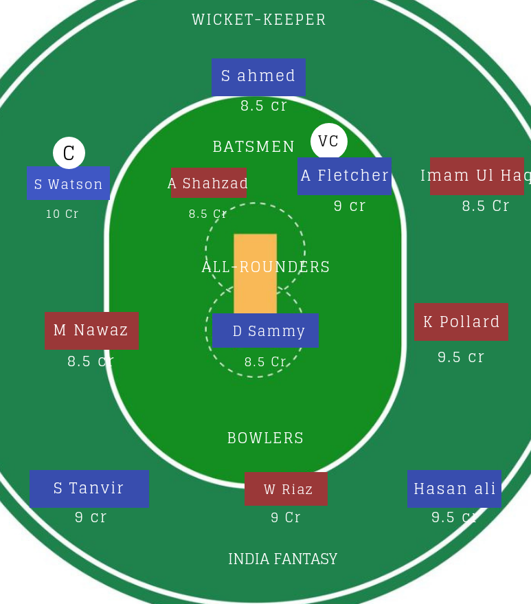 बल्लेबाज : Shane Watson, Rilee Rossouw, Ahmed Shehzad,Umar Akmal ( Doubt : Dwayne Smith)