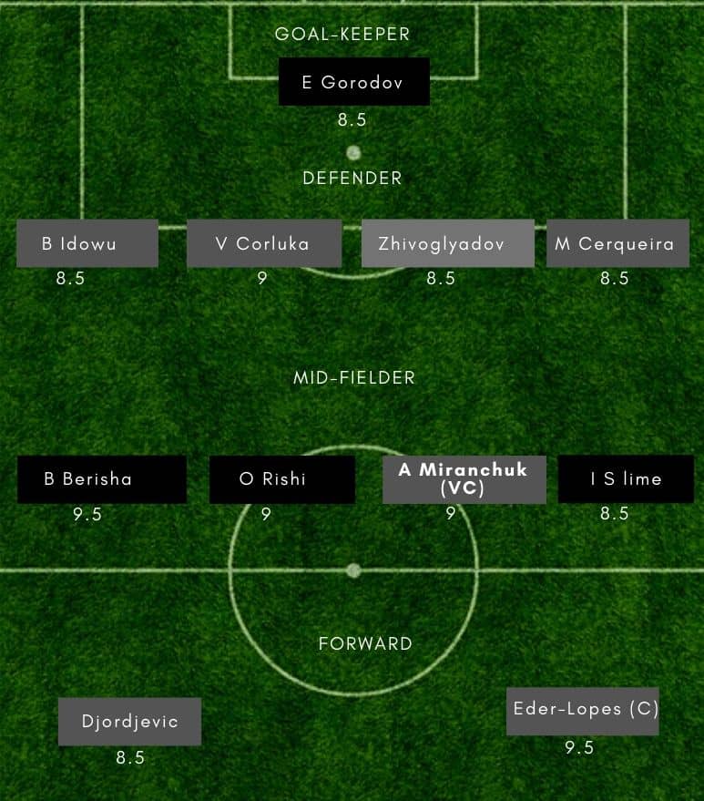 Guilherme (GK), Zhivoglyadov, Corluka, Magkeev, Idowu, Cerqueira, Mario, Krychowiak, Kolomeytsev, Miranchuk, Eder