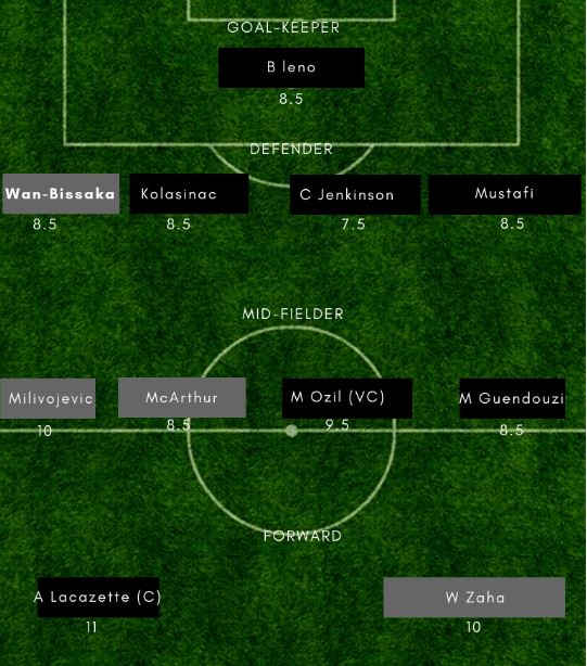 ARS vs CRY Dream11 Playing 11 – (Probable) – Arsenal– Leno (GK), Mustafi, Koscielny, Monreal, Maitland-Niles, Torreira, Xhaka, Kolasinac, Ozil, Aubameyang, Lacazette Crystal Palace– Guaita (GK), Wan-Bissaka, Kelly, Dann, Van Aanholt, McArthur, Milivojevic, Kouyate, Townsend, Zaha, Batshuayi