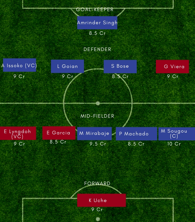 Mumbai City: Amrinder Singh (GK), Sauvik Chakrabarti, Lucian Goian, Anwar Ali, Arnold Issoko, Subhashish Bose, Matias Mirabaje, Sehnaj, Pranjal Bhumji, Paulo Machado, Modou Sougou