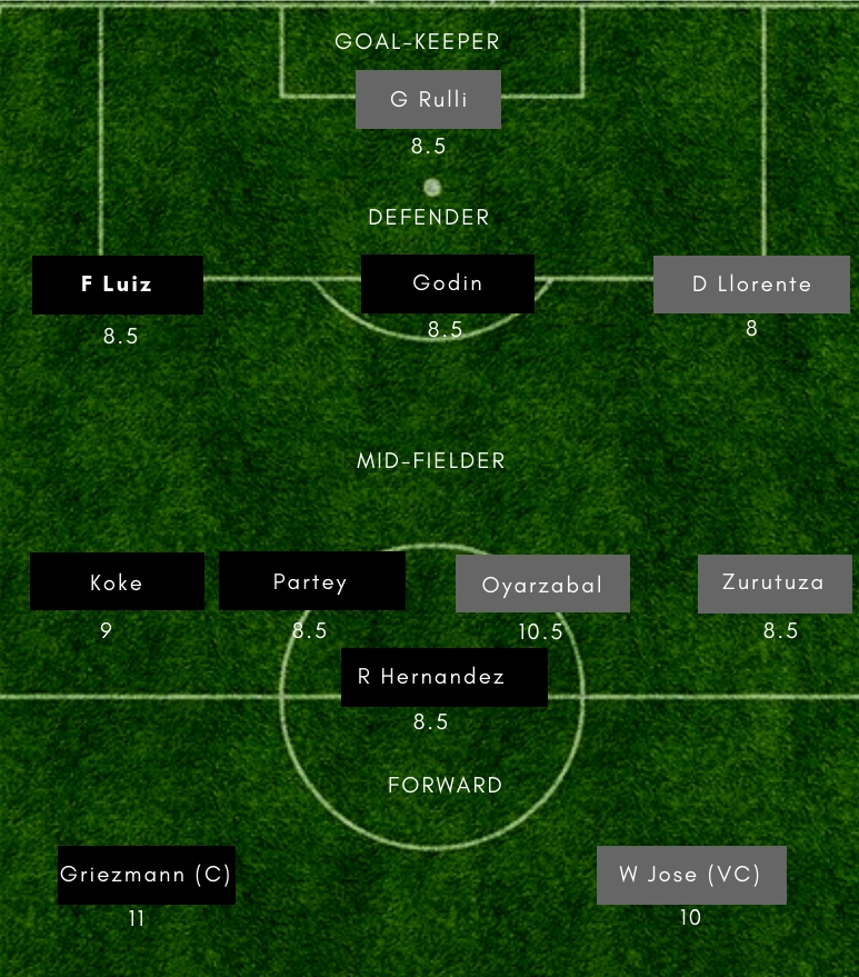 ATL vs RS Dream11 Playing 11 – (Probable) – Real Sociedad– Rulli (GK), Zaldua, Llorente, Navas, Hernandez; Zubeldia, Merino, Zurutuza; Juanmi, Willian Jose, Oyarzabal Atletico Madrid– Oblak (GK), Arias, Godin (c), Gimenez, Filipe Luis; Saul, Koke, Partey, Lemar; Griezmann; Morata