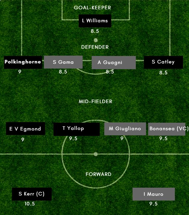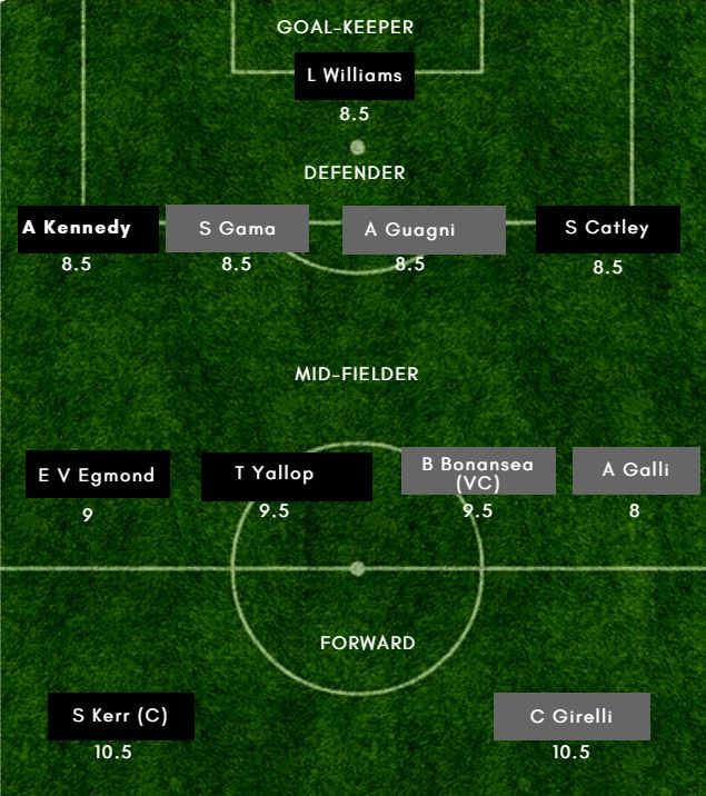 Probable XI: Williams (GK), Catley, Kennedy, Polkinghorne, Carpenter, Emily van Egmond, Logarzo, Foord, Tameka Yallop, Hayley Raso, Sam Kerr
