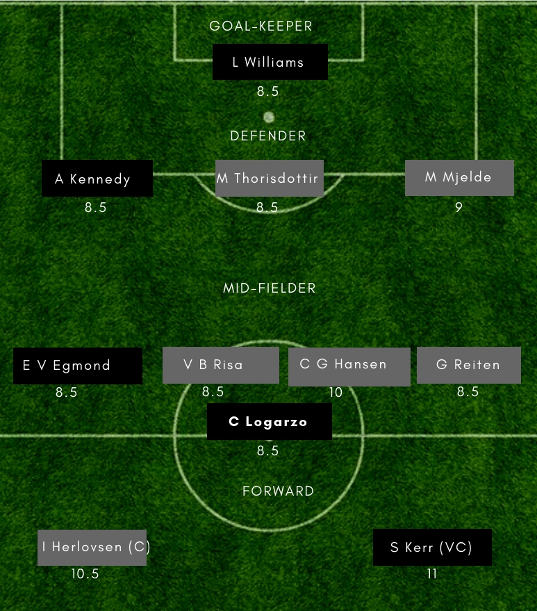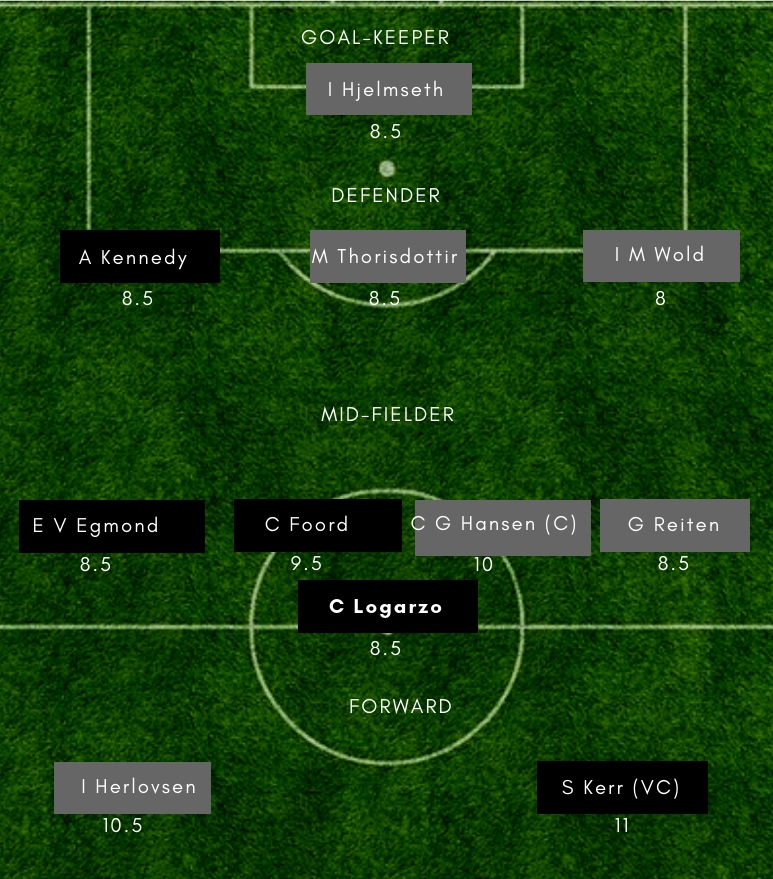 Guro Reiten: Not only she bagged a goal, but the 24-year-old was immense while tracking back to help in defending. Having topped the goal scoring charts in the Norwegian league for each of the last two campaigns, Reiten has bagged a new lucrative deal with English club Chelsea.
