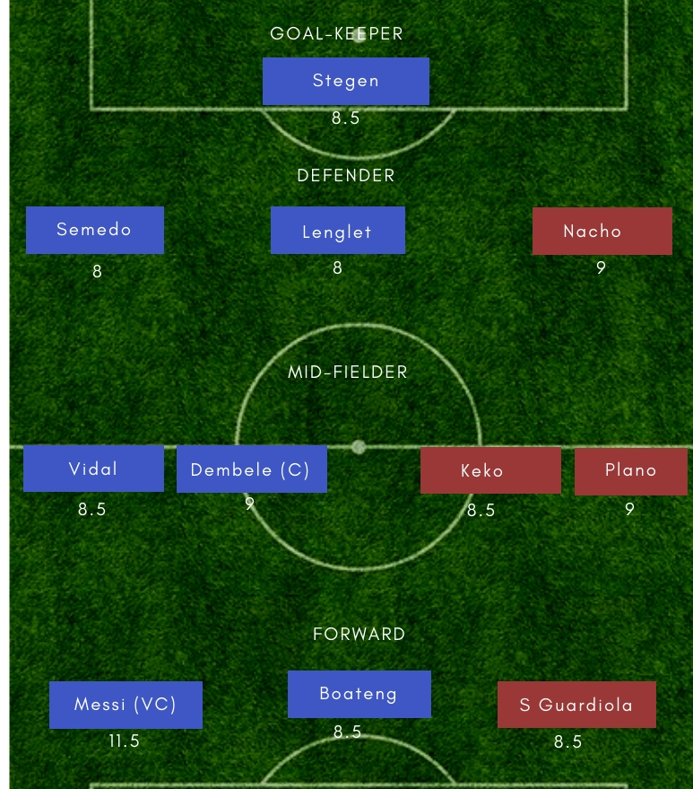 Fantasy picks from Barcelona – Lionel Messi and Luis Suarez are automatic favourites because of their blistering form. Dembele is also another good option as he is expected to start ahead of underperforming Coutinho.
