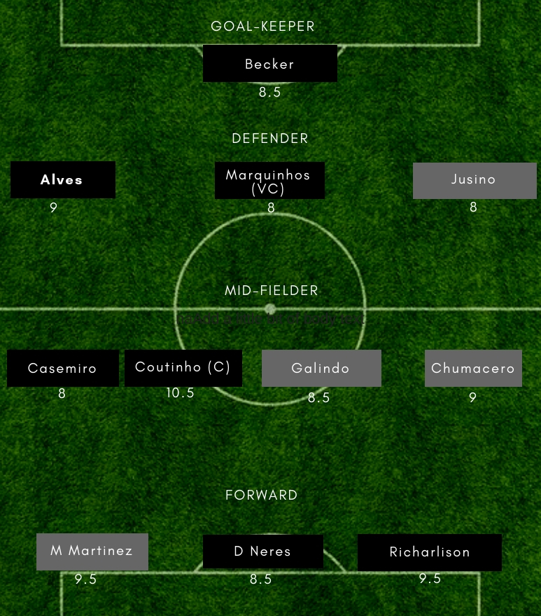 Philippe Coutinho Chumacero Casemiro David Neres Marquinhos