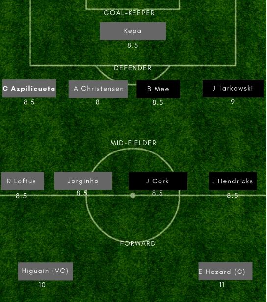 BUR vs CHE Dream11 Playing 11 – (Probable) – Chelsea– Kepa (GK), Azpilicueta, Luiz, Christensen, Emerson; Kante, Jorginho, Loftus-Cheek; Willian, Hazard, Higuain Burnley – Heaton (GK), Lowton, Tarkowski, Mee, Taylor; Hendrick, Westwood, Cork, McNeil, Wood, Barnes
