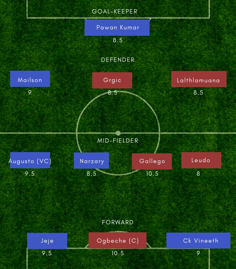 CFC vs NEUFC Dream11 Playing 11 – (Probable) – NorthEast United– Pawan Kumar (GK), Reagan Singh, Mato Grgic, Mislav Komorski, Robert Lalthlamuana, Redeem Tlang, Rowllin Borges, Nikhil Kadam, Federico Gallego, Juan Mascia, Bartholomew Ogbeche Chennaiyin FC– Karanjit Singh (GK), Inigo Calderon, Mailson Alves, Eli Sabia, Tondonba Singh, Anirudh Thapa, Germanpreet Singh, Gregory Nelson, Raphael Augusto, CK Vineeth, Jeje Lalpekhlua