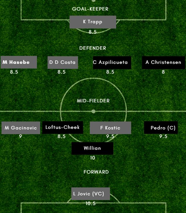 CHE vs FRK Dream11 Playing 11 – (Probable) – Eintracht Frankfurt– Trapp (GK), Ndicka, Hinteregger, Hasebe, Costa, Rode, Fernandes, Kostic, Gacinovic, Jovic, Paciencia Chelsea– Arrizabalaga (GK), Azpilicueta, Christensen, Luiz, Palmieri, Kante, Jorginho, Barkley, Hazard, Pedro, Giroud