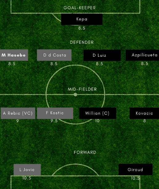 Probable XI: Arrizabalaga (GK), Azpilicueta, Christensen, Luiz, Emerson; Jorginho, Loftus-Cheek, Kovacic, WIllian, Hazard, Giroud