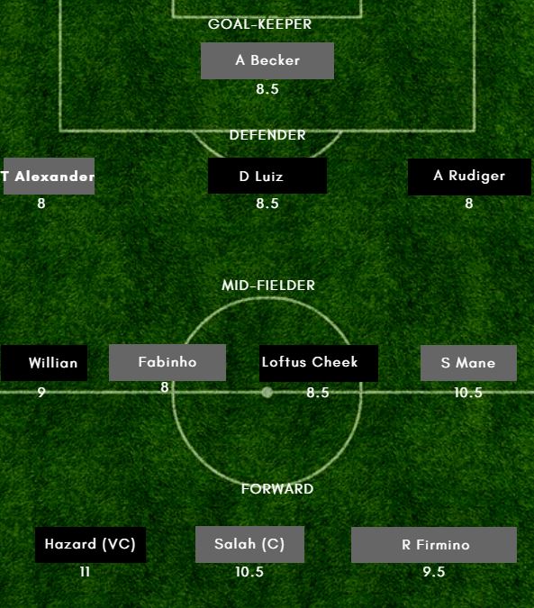 Chelsea– Kepa (GK), Azpilicueta, Rudiger, Luiz, Emerson; Kante, Jorginho, Loftus-Cheek; Hudson-Odoi, Higuain, Hazard