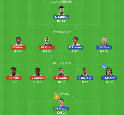 Leicester midfielder Wilfried Ndidi will start in the midfield alongside Nigeria captain and former Chelsea player John Obi Mikel. While Luka Modric, Ivan Perisic, and Ivan Rakitic look set to be Croatia’s main midfield trio.