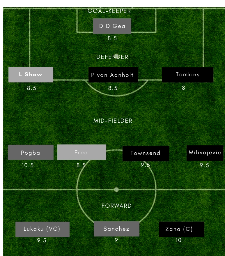 CRY vs MUN Dream11 Playing 11 – (Probable) – Crystal Palace– Guaita (GK), Ward, Tomkins, Dann, Van Aanholt; McArthur, Milivojevic, Schlupp; Townsend, Batshuayi, Zaha Manchester United– De Gea (GK), Young, Smalling, Lindelof, Shaw; Pereira, McTominay, Pogba; Sanchez, Lukaku, Martial