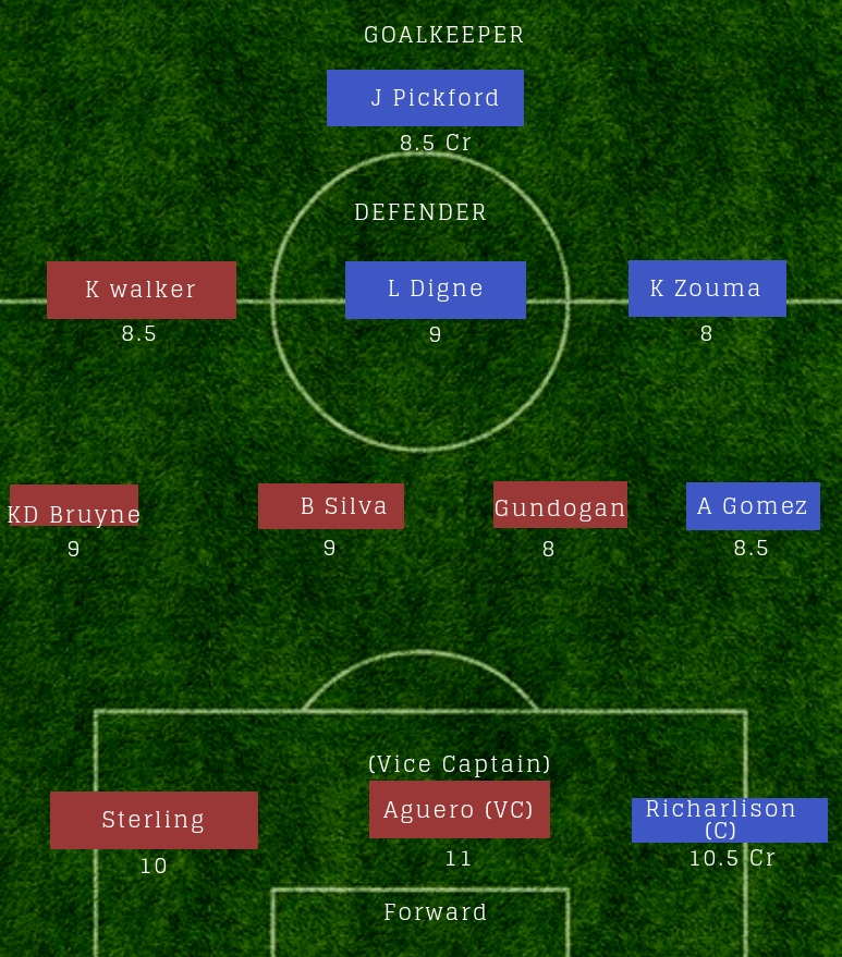 Everton– Pickford (GK), Coleman, Keane, Zouma, Digne, Davies, Gomes, Bernard, Sigurdsson, Richarlison, Calvert-Lewin