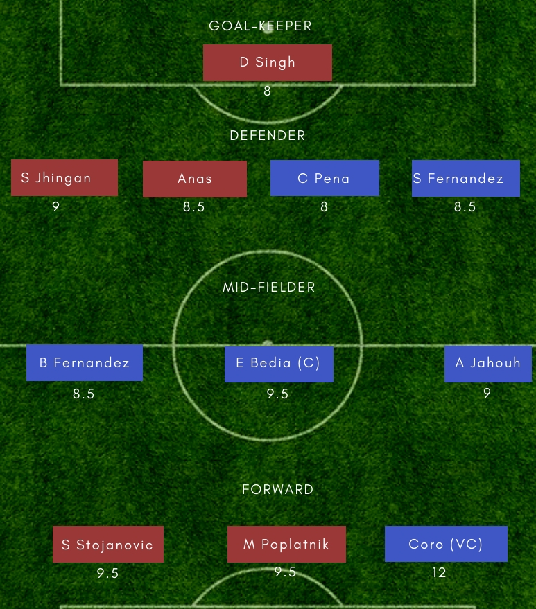 Suspended – None. Questionable – None. Note: Ferran Corominas is Goa’s go-to-man in all situations. He scored the hattrick in the last game and will be leading the attack for the hosts in the match. The manager is likely to stick with the same playing 11 which beat ATK 3-0 in the last game. Key Players – Ferran Corominas, Jackichand Singh, Edu Bedia