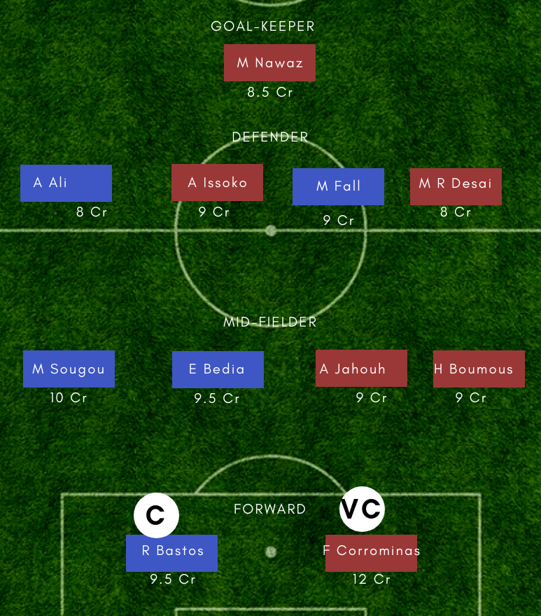 फॉरवर्ड में R Bastos से इस मैच में गोल कि उम्मीद कर सकते हैं. इस ब्राजीलियाई खिलाड़ी ने इस सीजन तीन गोल और तीन असिस्ट किये हैं.