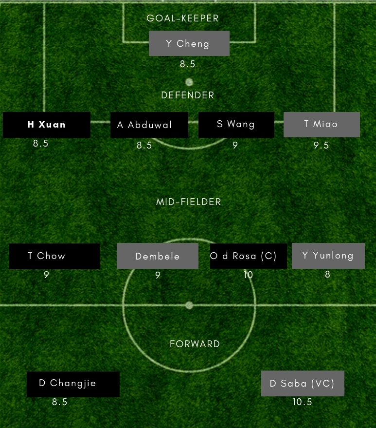 Dia Saba: 16.5 Mousa Dembele: 18.5 Tim Chow: 14.5 Ivo: (First Game ion Dream11) Fan Yunlong: 13