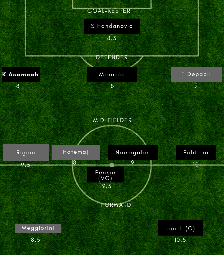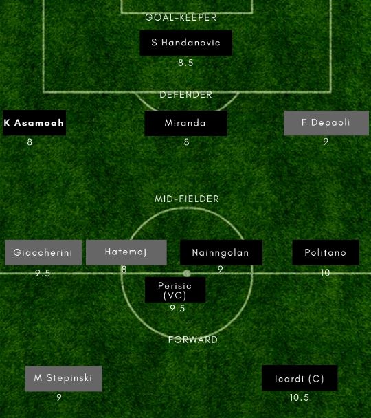 Captain and Vice-Captain Selection: Ivan Perisic: Winger, attacking midfielder or a second striker, he can play almost in anywhere upfield. Inter’s prized asset has been on the transfer list of many European giants. but so far he has stayed put.